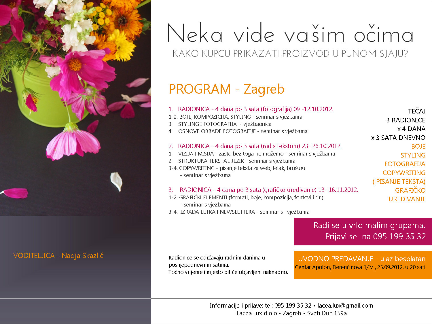 U prilogu je katalog tečaja pa bih jako voljela da ga pogledate. Može i on line.