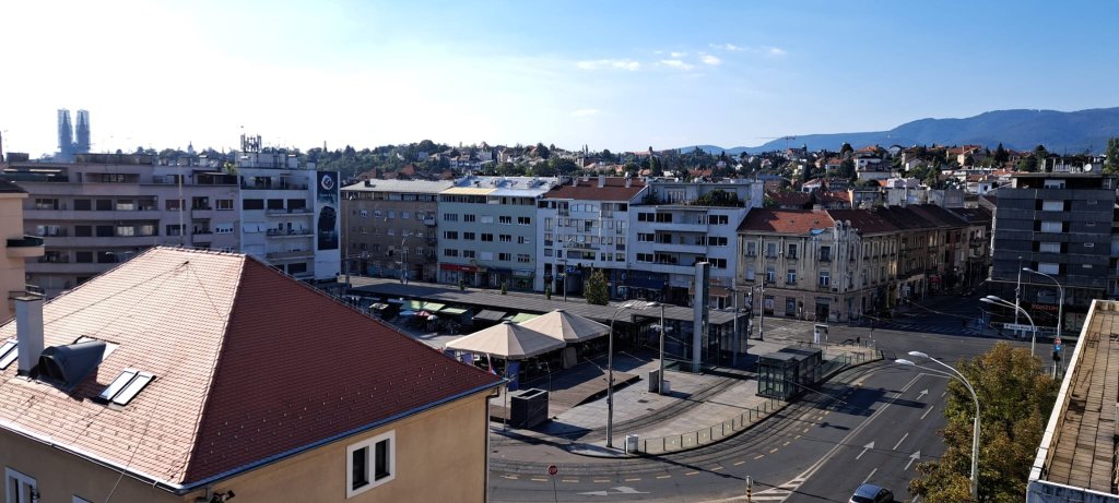 3 garaže (Kvatrić, Gorica i Plaza), sve tramvajske linije, autobusna stajališta, točno ispred zgrade je taxi stanica.